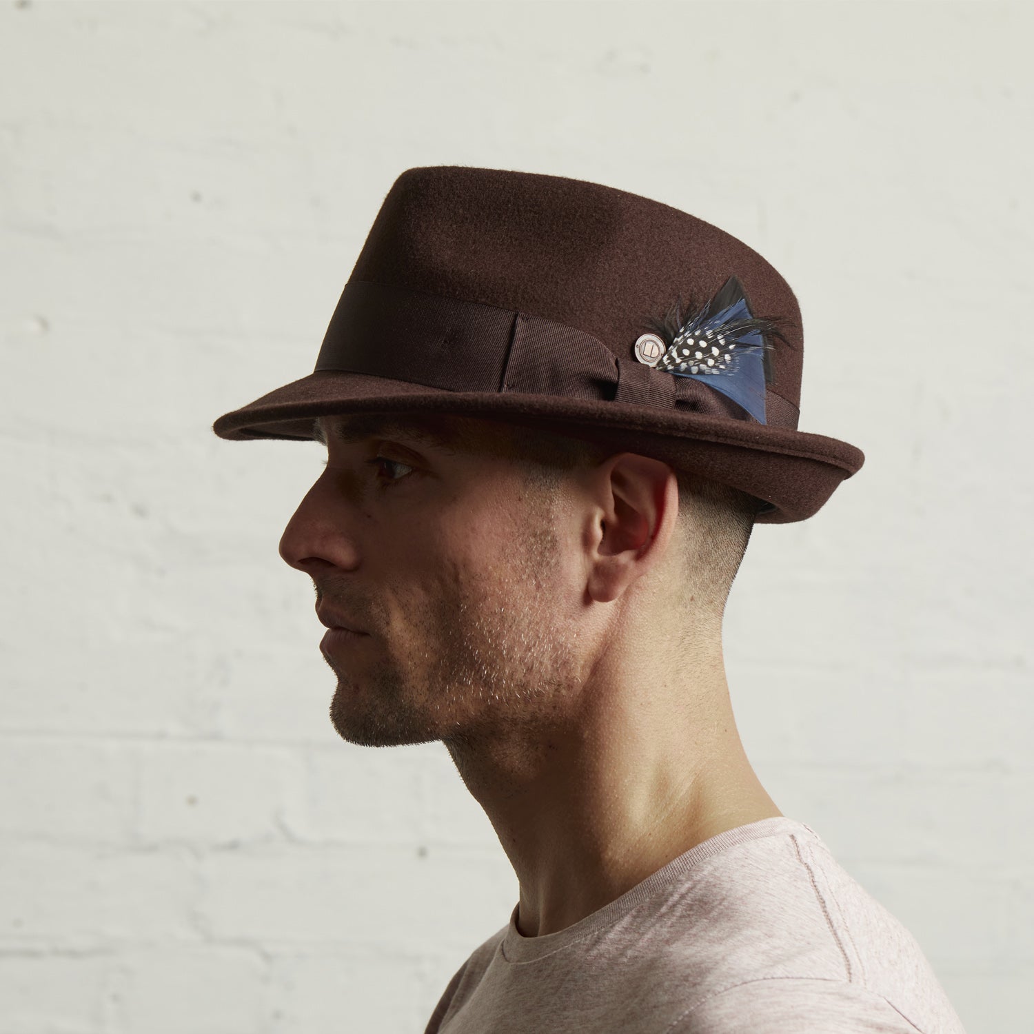 Crafted from 100% wool felt, this hat delivers classic form with a modern edge. The structured yet soft feel provides all-day comfort and elegance. A 25mm metal badge logo on the side marks its authenticity, while a removable featherdetail on the left side adds a distinctive touch of character.