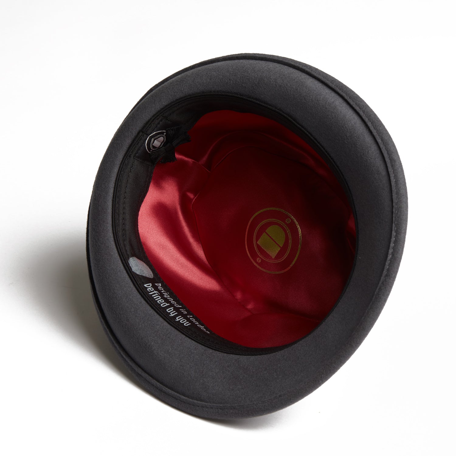 Inside, the hat is fully lined with luxurious red satin, featuring a Dasmarca gold foil tip print, and a black cotton sweatband ensures breathable comfort throughout the day.