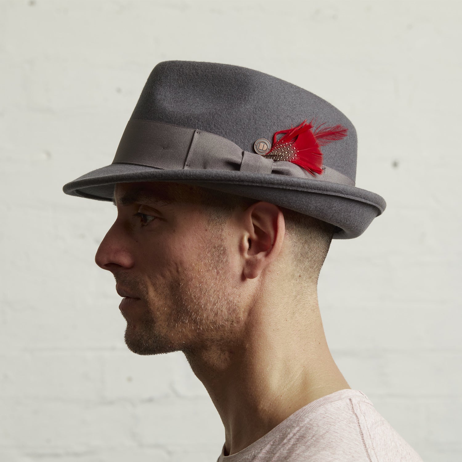 Crafted from 100% wool felt, this hat delivers classic form with a modern edge. The structured yet soft feel provides all-day comfort and elegance. A 25mm metal badge logo on the side marks its authenticity, while a removable featherdetail on the left side adds a distinctive touch of character.