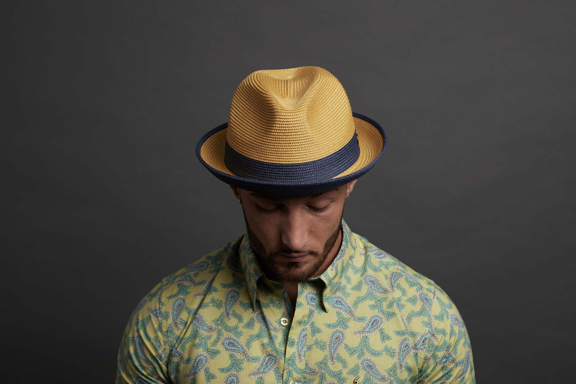 Florence: Inspired by the use of contrast hues to depict perfection of three dimension on paintings of Renaissance, these hats have two tone colours on the hat brim, a technique introduced for the first time in the hat industry. The top brim has a colour in contrast to the under brim, giving each hat a distinct Renaissance character. All the hats illustrate a canvas of beauty, precision & innovation!