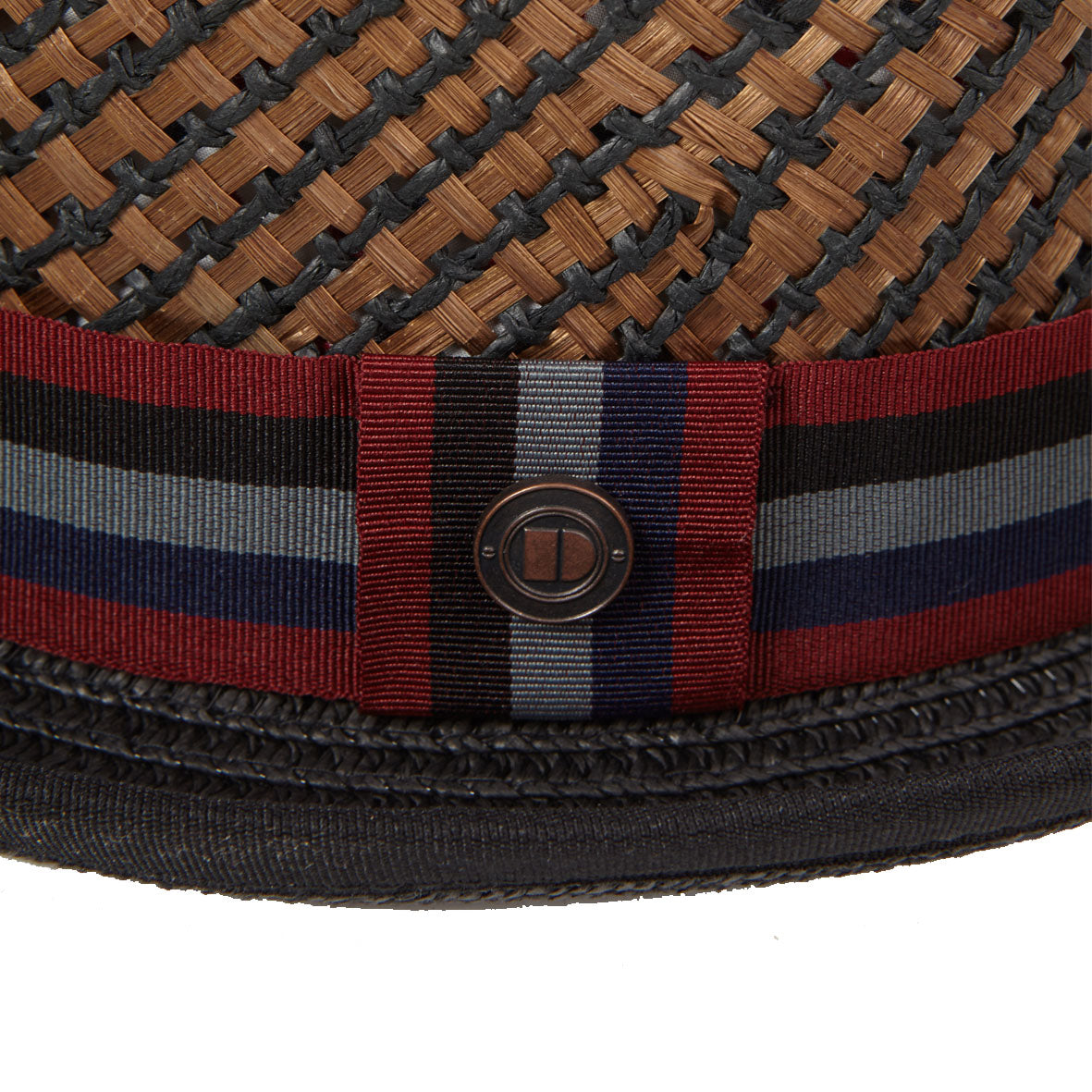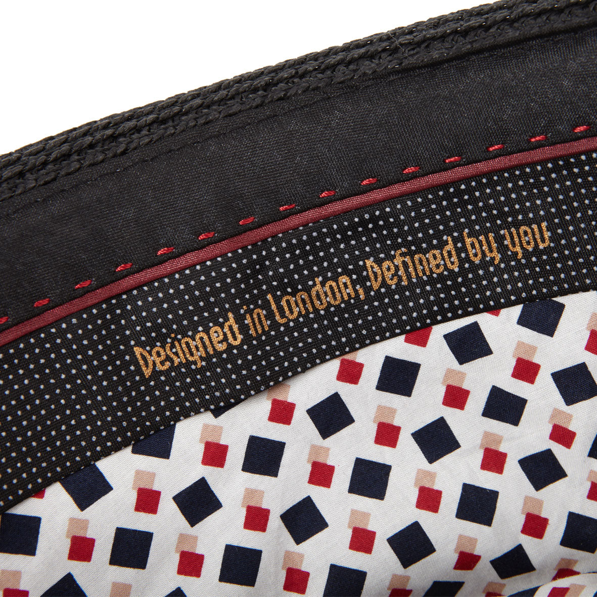 100% Ramie straw weaveHand stitching detail on sweatband“Design in London, defined by you” print on sweatbandDiamond shape crown top, 9cm front crown height4cm pre-snap turned up brimCotton sweatband, lightly padded with anti-sweat materialDasmarca metal pin for authenticityHat brim is braided. Bound edge with mini piping.Hat Size Chart: S:54-55cm, M:56-57cm, L:58-59cm, XL:60-61cm